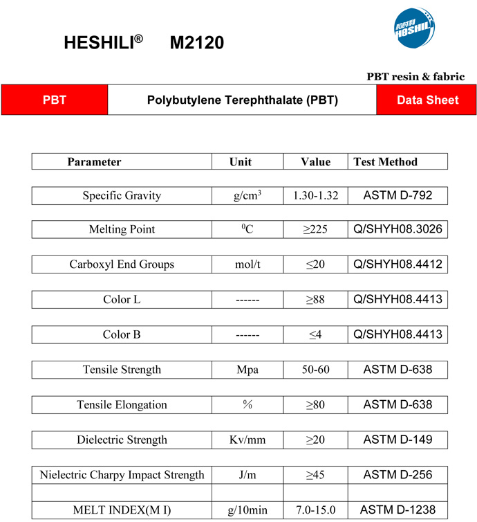 Our Grade No PBT M2120 is widely used in optical fiber cable.our product has the advantages of fast crystallization,easy to mold,good mechanical properties and electrical properties,hydrolysis resistance.