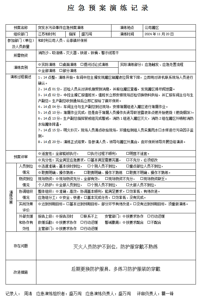 突發(fā)水事件應(yīng)急預(yù)案演練評(píng)估報(bào)告及應(yīng)急預(yù)案演練記錄